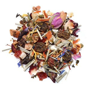 Caffeine-free and sugar-free, CreativiTea Fruit Tea celebrates artists of the world with a fruit and herb tisane blended with apple, mango, orange peel, carrot flakes, lemongrass, stinging nettles, sweet mulberry leaves, and rosebuds.